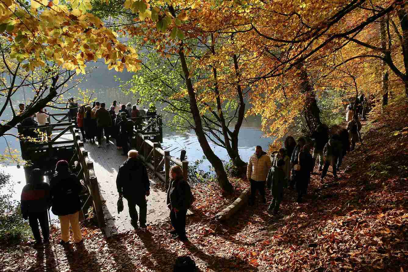 Sarı, kırmızı, kahverengi ve yeşilin tonlarıyla bezeli Yedigöller’e gelen misafirler, parka adını veren Büyükgöl, Deringöl, Seringöl, Nazlıgöl, Küçükgöl, İncegöl ve Sazlıgöl’ün çevresinde yürüyüş yaptı.